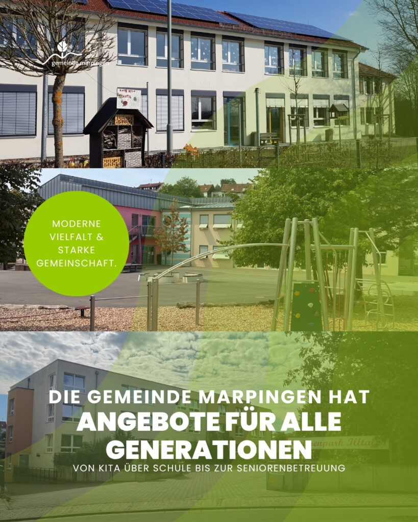 Von Kinderbetreuung in Kitas über Grund- und Gemeinschaftsschulen bis hin zu Seniorenresidenzen: Marpingen bietet eine moderne Infrastruktur für Jung und Alt. Die Gemeinde schafft Räume für Bildung, Freizeit und Gemeinschaft, sodass sich jede Generation wohlfühlen und aktiv am Leben der Gemeinde teilnehmen kann.